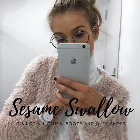 Author’s Note: You can find all of the Sesame Swallow content — excerpts, etc., by clicking on her name in the navigation bar at the top of the page. Sesame is currently in line for a number of novels, most of them in some stage of revision right now, but there will continue to be mini-mysteries as I have time to finish them.