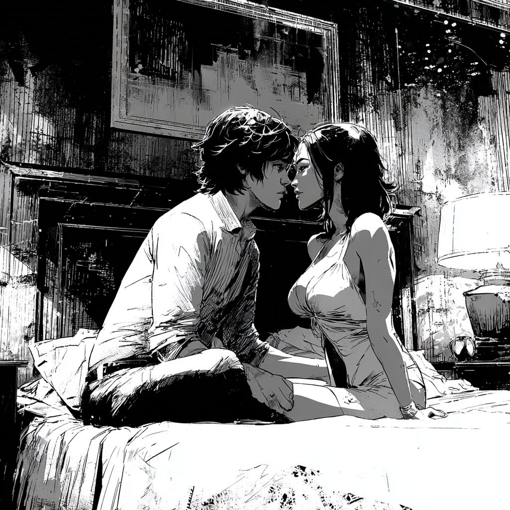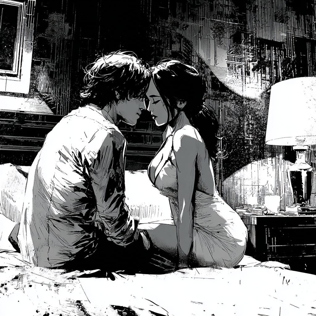 I teased her nipples into diamonds, rolled them between my fingers, feeling her squirm underneath me. A moan as my mouth worked lower, finding her open and ready. Then gently at first, afraid to hurt her after what had happened, I pushed inside. She clutched at me, nails digging in as she pulled me deeper, and then a deep, shuddering moan from her lips as I rocked my hips. Slow, easy, loving and tender, and then the filth dripping from her lips driving me on, until I was fucking her like these were our last moments on Earth.